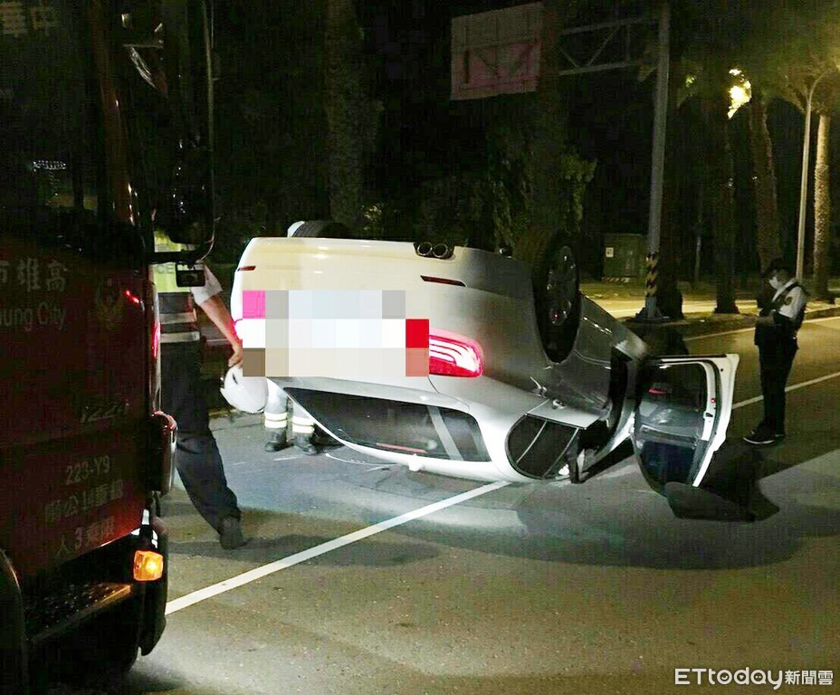 ▲▼高雄市區晚間一部自小客車駕駛,酒駕肇事。(圖/記者宋德威翻攝,下同)