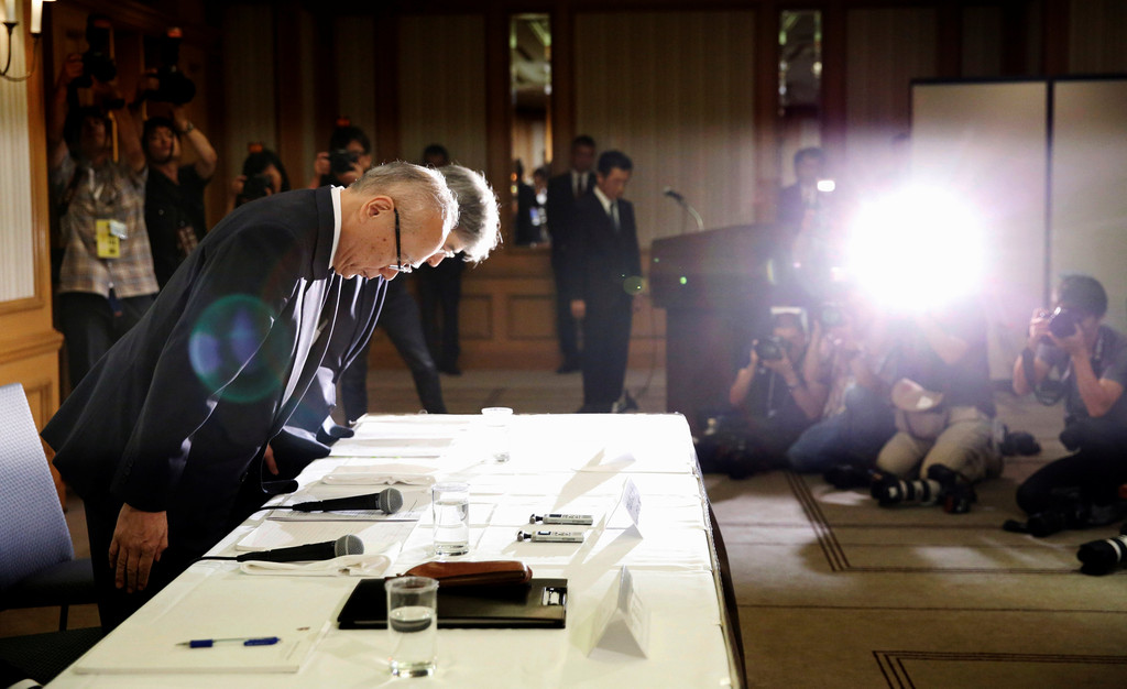 ▲東京醫科大學召開記者會,就篡改女學生和重考生成績道歉。(圖/路透社)