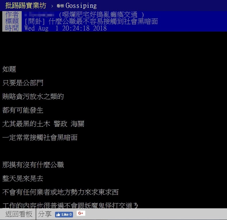 ▲網友詢問「什麼公職最不容易接觸到社會黑暗面?」(圖/翻攝自PTT)