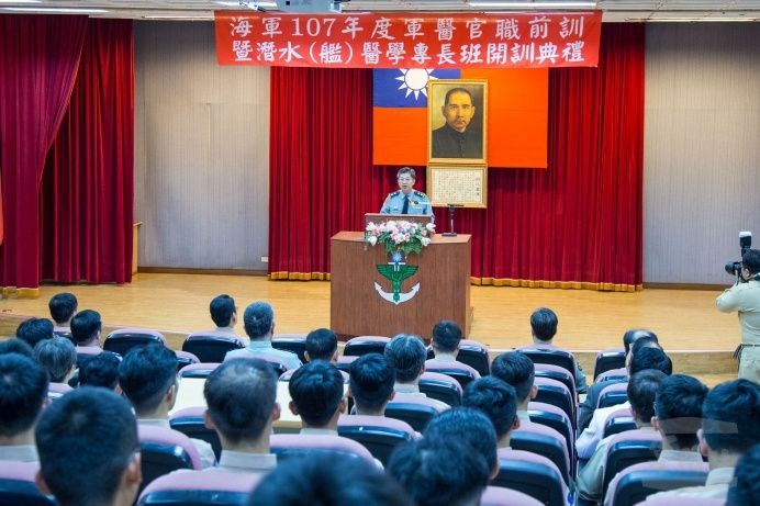 海軍司令部9日舉行「海軍107 年醫官職前訓暨潛水(艦)醫學專長班」開訓典禮,軍醫局長陳建同中將期勉學員們均能具備減壓病症急救處置能力,在各項職務中交織成綿密的潛水醫學安全防護網,有效支援潛水(艦)部隊遂行各項戰演訓任務。