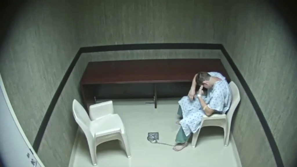 佛州檢察官在8日公布了這段影片,穿著病人服的克魯茲獨自坐在椅子上,一開始他朝著自己頭做出開槍的動作,接下來還把比著槍手勢的手指放入嘴巴內以及對準心臟,然後揮拳打自己的臉,做出抓手臂的動作。接下來,布勞沃德郡(Broward County)警探庫爾西歐(John Curcio)走進審問室,打招呼後他問到,「你之前有提到有關『惡魔』(Demon)的事情,可以跟我說嗎」。