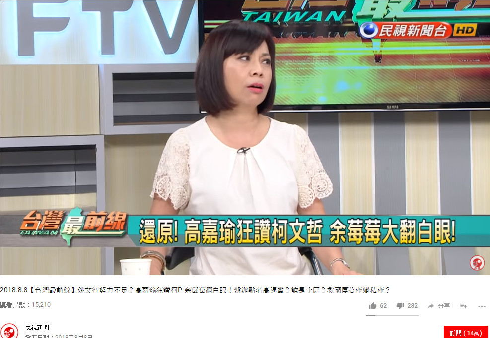 民進黨議員高嘉瑜近日因與同黨台北市長參選人姚文智陣營互嗆引發熱議。高嘉瑜3日上年代《新聞面對面》時,在節目中狂讚台北市長柯文哲,卻對自家推出的參選人姚文智的政策輕描淡寫帶過,讓同場的媒體人余莓莓忍不住翻白眼,還對高說「夠了」、「所以柯文哲很棒棒」,影片最近被網友翻出,同樣引發不少討論。