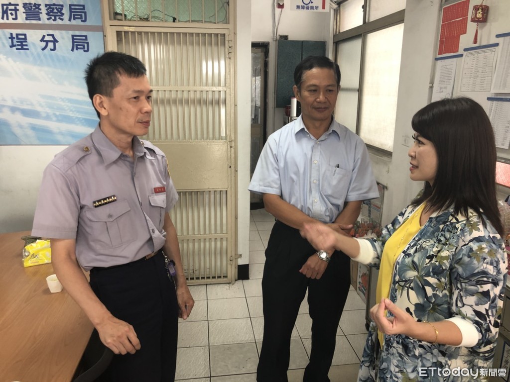 ▲高雄市議員陳美雅(圖右)到派出所關切。(圖/記者宋德威攝)