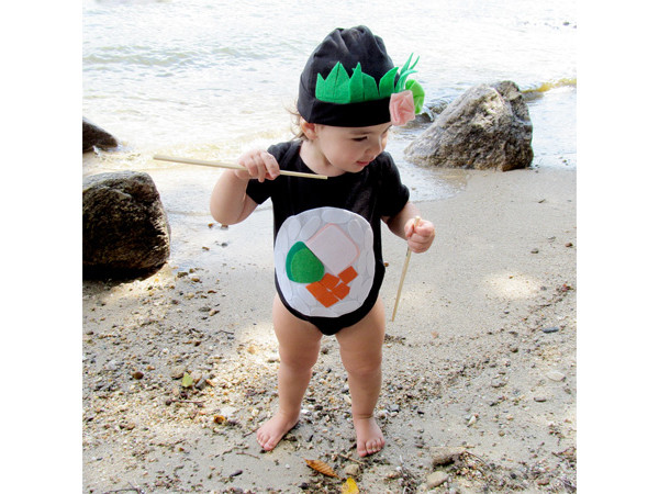 大家有看出來這個寶寶的裝扮是什麼嗎?(雖然我們也一直盯著他胖嘟嘟的大腿XD)沒錯,就是美味動人的捲壽司阿,除了內餡有飽滿的紅蘿蔔、小黃瓜以及蟹肉,頭頂上更是少不了壽司擺盤旁邊的假山裝飾阿!