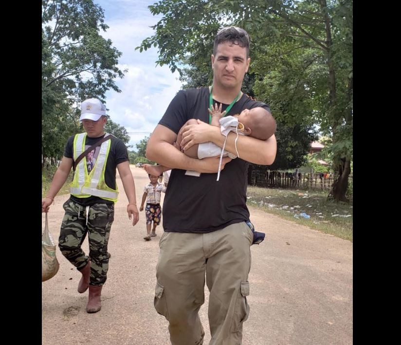 根據《每日郵報》報導,來自美國伊利諾州(Illinois)的33歲前海軍陸戰隊員阿爾法洛 (Michael Alfaro),在得知寮國災情後,便立刻前往當地加入救援行動。當他31日來到阿速坡省Sanamxai的一個村莊進行搜索時,意外發現一名奄奄一息的男嬰。