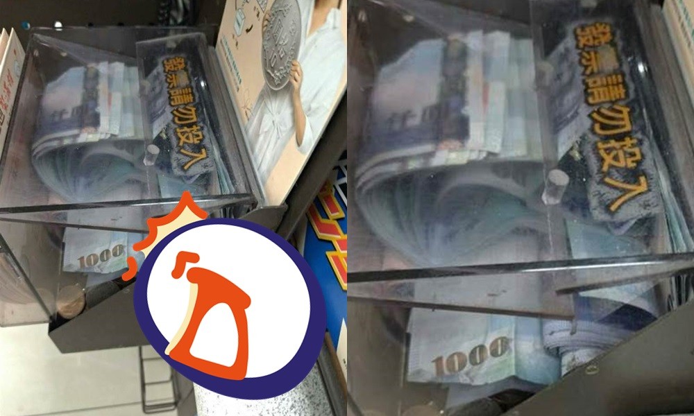 一名男網友在台中一間便利商店打卡,文中表示「順手捐現金,救救老殘窮」,並貼出照片,只見超商的捐款箱上寫有「發票請勿投入」,竟然有人就將兩疊藍色的千元鈔票塞進去,底下則有少許零錢。若一疊鈔票以10張計算,箱子裡約有2萬元現金。