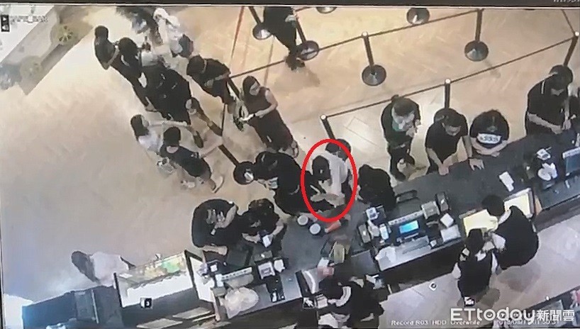 這名頭戴鴨舌帽的男奧客年紀約20多歲,在現場等侯店員幫另一個顧客服務,男奧客在後方一直催,然後店員回覆「你前面還有一位客人,處理好了,再來幫你服務。」沒想到他就一手揮掃吧台的飲料,甩頭就走人,讓所有人錯愕。