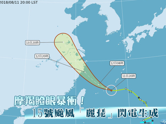 根據氣象局觀測,摩羯颱風11日晚間8時中心位於台北東方540公里海面上,通過琉球群島之後,持續以時速23公里速度,向西北西、朝大陸江浙沿海移動,直接侵襲台灣機率較低。至於廣東、關島附近海面的熱帶性低氣壓,12日凌晨0時左右,日本氣象廳已經升格列為第15號颱風麗琵,預估將往北,往日本移動,對台灣也無直接影響。