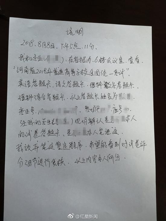 ▲考生檢驗過答題卡後放棄鑑定。(圖/翻攝自微博/紅星新聞)