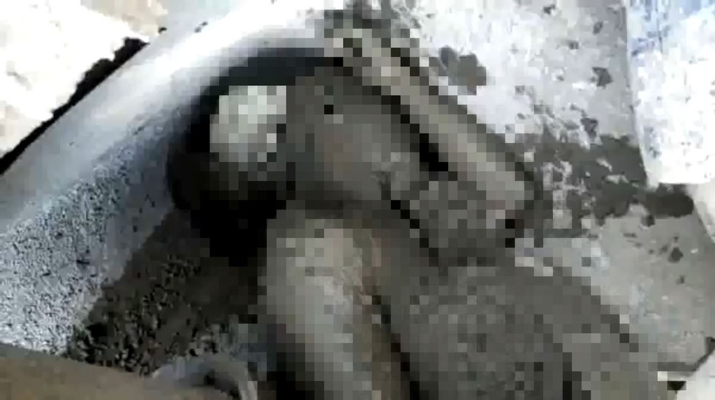 ▲ 死者屍體全身上下包覆著混擬土。(圖/翻攝自Youtube)