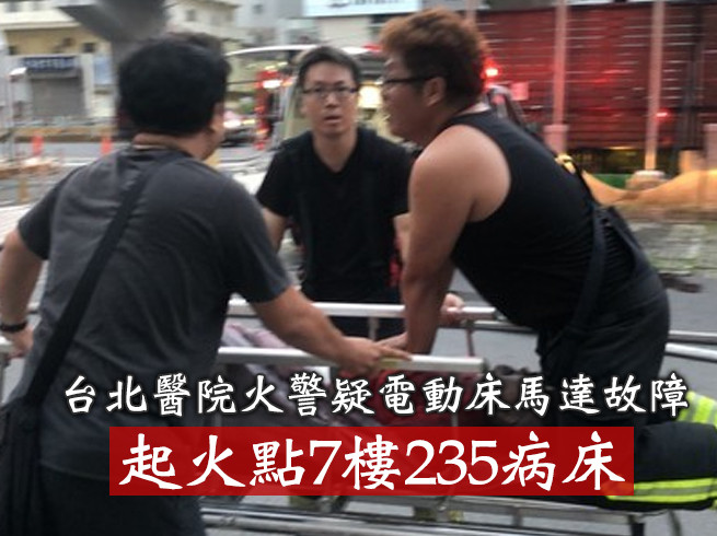 新北市新莊區署立台北醫院7樓護理之家13日發生病房大火,造成13位病患命危、6人重傷昏迷,共23人送醫。火勢已在今晨5點27分撲滅,警消人員初步研判應該是病床的電動馬達故障,起火點則是在7樓23房的235號病床。