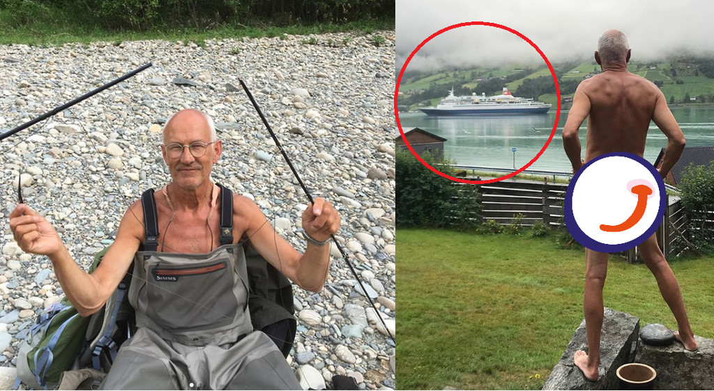 71歲的挪威政治人物史維恩(Svein Opdal)8日時,到知名觀光景點奧爾登村(Olden)度假,不過該村在當周接待了超過11000名的遊客,大型郵輪不斷的在一旁的湖中行駛,數量更隨著天數增加。對此史維恩感到非常不滿意,於是在某一天起了個大早,要求妻子掌鏡,全身赤裸的面對湖中央的郵輪拍照,以表達抗議。
