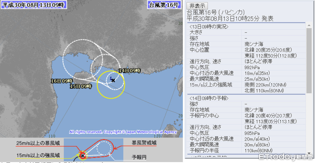 ▲第16號颱風貝碧佳生成。(圖/翻攝日本氣象廳)