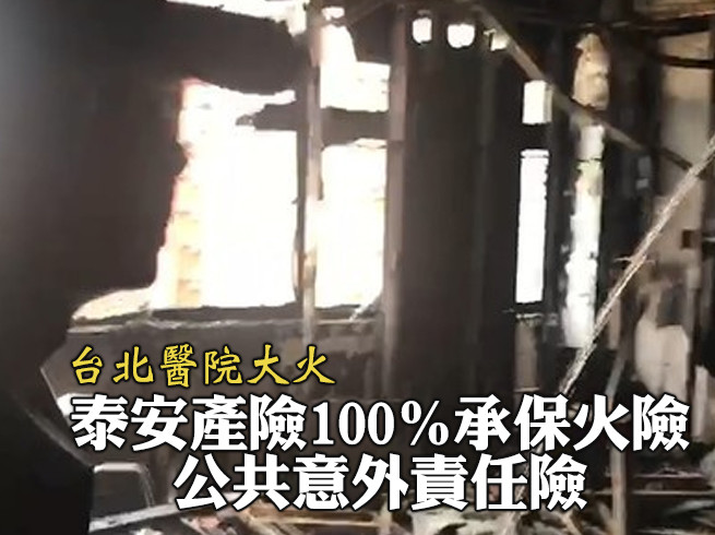泰安產險則100%承保台北醫院的商業火險與公共意外責任險。泰安產險表示,火災發生後第一時間,皆以救人為最優先要務,而同時公司的火場鑑定理賠小組也隨時待命,配合警消人員的現場鑑定及清理工作。