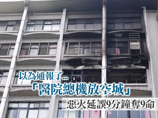 新北市新莊區衛服部台北醫院13日凌晨發生惡火,醫院緊急疏散病患,並於5時27分撲滅火勢,但截止到上午12時許已有9人死亡、10人重傷。衛福部輔導委員潘國雄表示,當時護理站向總機通報,卻無人接聽,而院方以為已經通報,沒想到10分鐘過去卻一直沒見到消防車來,才又趕緊聯絡119。