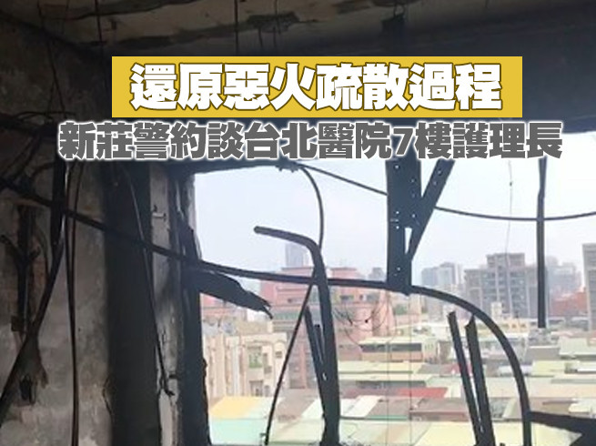台北醫院7樓護理之家13日清晨4時許竄出火舌,釀9死,目前新北市消防局推測逃生後無關房門、延誤通報及海綿床迅速燃燒等3原因釀成火警死傷慘重,檢警消已介入調查。稍早7樓的潘姓護理長、發現火勢的外籍看護到新莊分局製作筆錄,警方請她們協助還原火警發生當下狀況、疏散過程等細節。