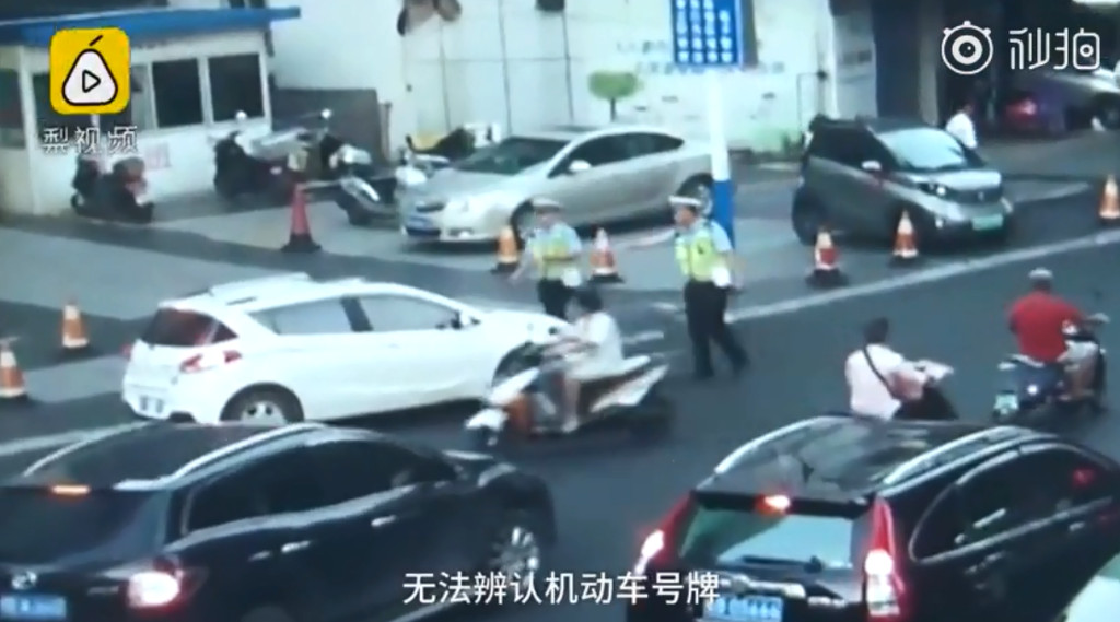 ▲▼兩名交警確認後,將車主攔到路邊停下。(圖/翻攝自梨視頻)