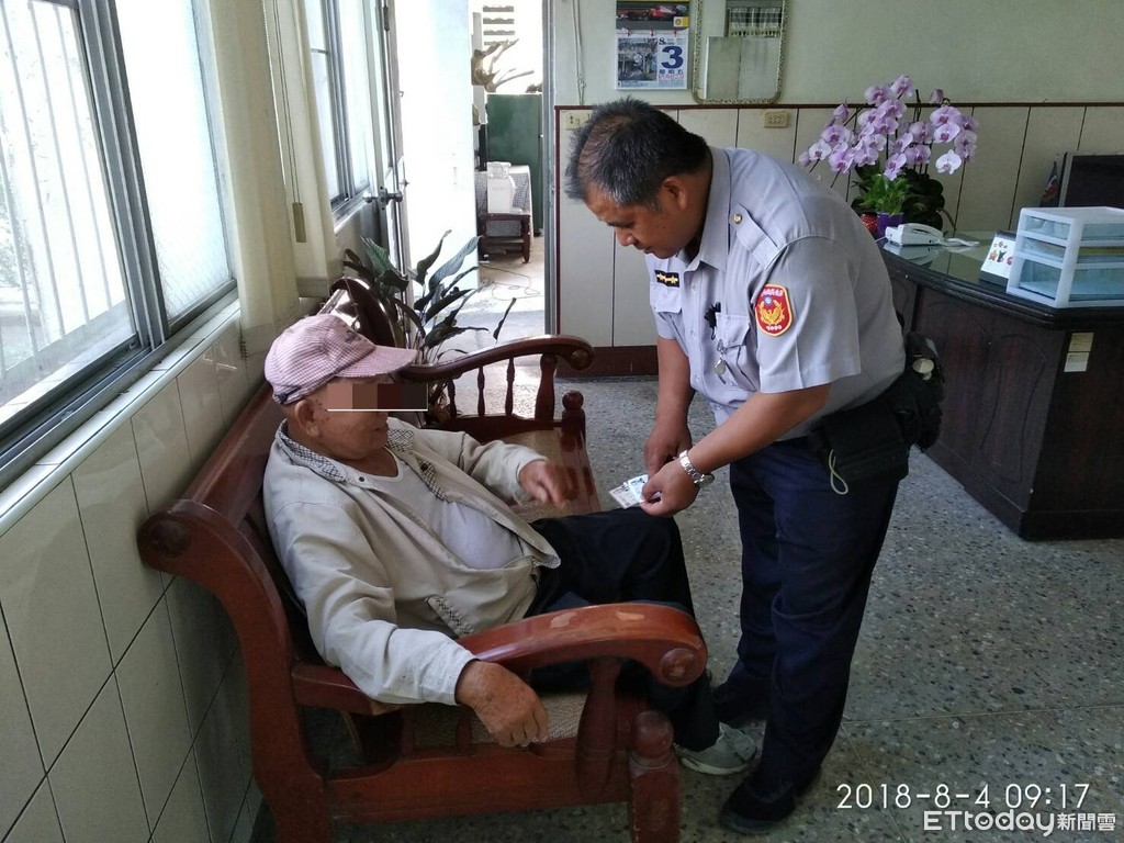 里港分局三地門分駐所警員4日上午10時,發現一名老翁獨自坐在路旁神色匆忙,嘴裡不停喃喃自語,主動上前關切後發現,老翁是因為一覺起醒來沒看見兒子,才想出門尋找,因為體力不支又忘記回家的路,才會蹲在路邊休息。員警最後憑藉老翁的身分證,確認他就住在龍泉村,隨即用警車護送他返家。