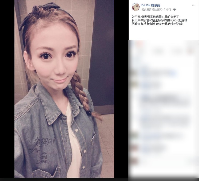 ▲劉喬安臉書留言預告今天中午將與醫生說明。(圖/翻攝自DJ Via 劉依函粉絲專頁)