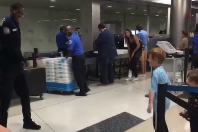 這一家人在13日於紐澤西的機場接受行李檢驗,這時三個孩子的其中一個突然向運輸局員工提出尬舞的要求。TSA發布的影片可以看到,穿著淺藍色衣服的孩子跳起近期在社群媒體上很流行的「The Floss」舞蹈,運輸局員工也輕易地跟上,接下來小男孩再出新招,瘋狂擺動手臂和屁股,但這名瘦高的工作人員都接受挑戰,形成有趣的畫面。