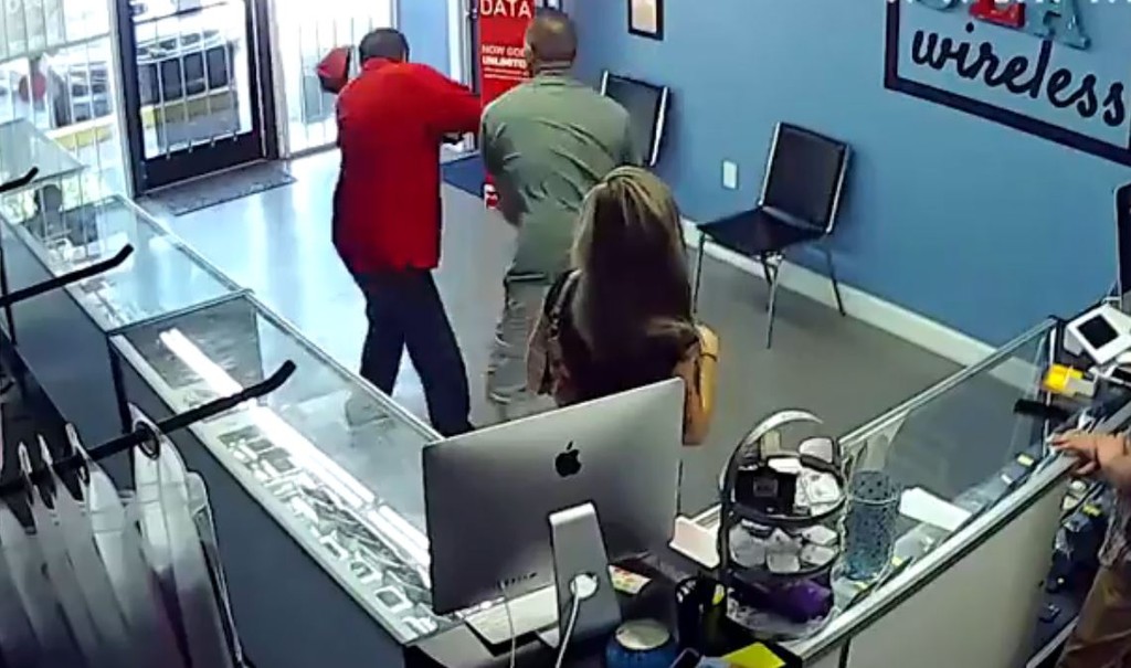 美國北卡羅萊納州(North Carolina)一間手機通訊行日前發生小衝突,當時戴著紅帽的男子緊盯店內另一名女子的屁股,被質問是否在偷看時,他還露出輕蔑的笑容說「對」,沒想到馬上被女子的男友痛揍一拳。對此,女友完全沒有感謝男友,反而大喊「你有什麼毛病」,並要男友去向對方道歉。