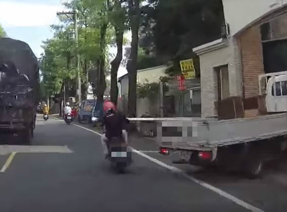 ▲大社區車禍,騎士撞上貨車後方載的鋁條。(圖/翻攝自YouTube/kem cha,已獲授權使用,下同)