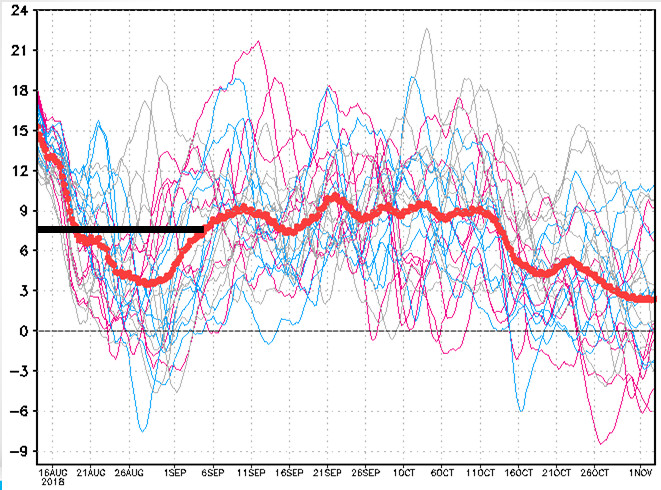另外,今年至目前為止共有18個颱風生成,相較氣候值大約是13.4個颱風,明顯比氣候值多。至於未來颱風的活躍度,賈新興分析,8月中後會休息一段時間,一直到9月上旬後半(9/5後),大環境就比較有利颱風的生成。不過,值得注意的是,目前在菲律賓東方的熱帶擾動在近期也有機會發展成颱風,後續要持續關注。