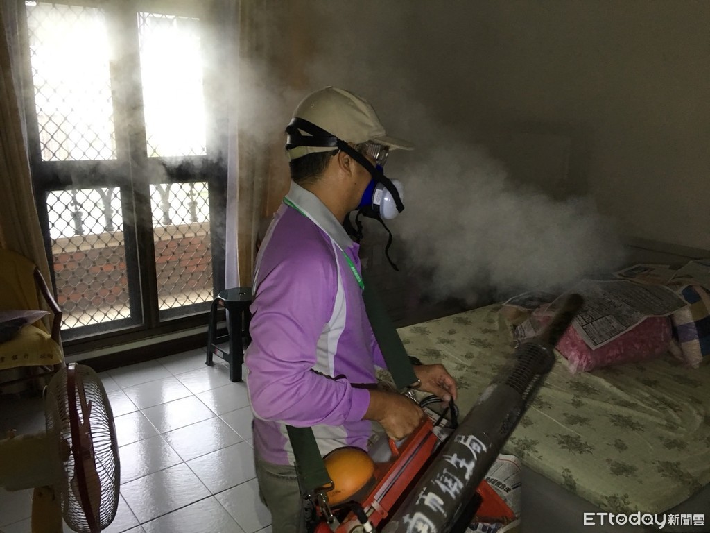 ▲台南市8月12日發現1例自泰國返國民眾,登革熱快篩及IgM抗體皆呈陽性反應,為保護社區民眾健康,市府進行噴藥作業。(圖/記者林悅翻攝)