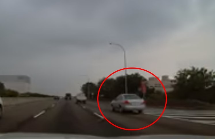 影片中,只見13日下午國道一號的車流量並不大,就在正要行經165公里台中系統交流道時,外線一輛銀色轎車「靜止」在原地,後方駕駛見狀趕忙長按喇叭提醒,同時緊急切進其他車道閃避,這才沒有發生車禍。