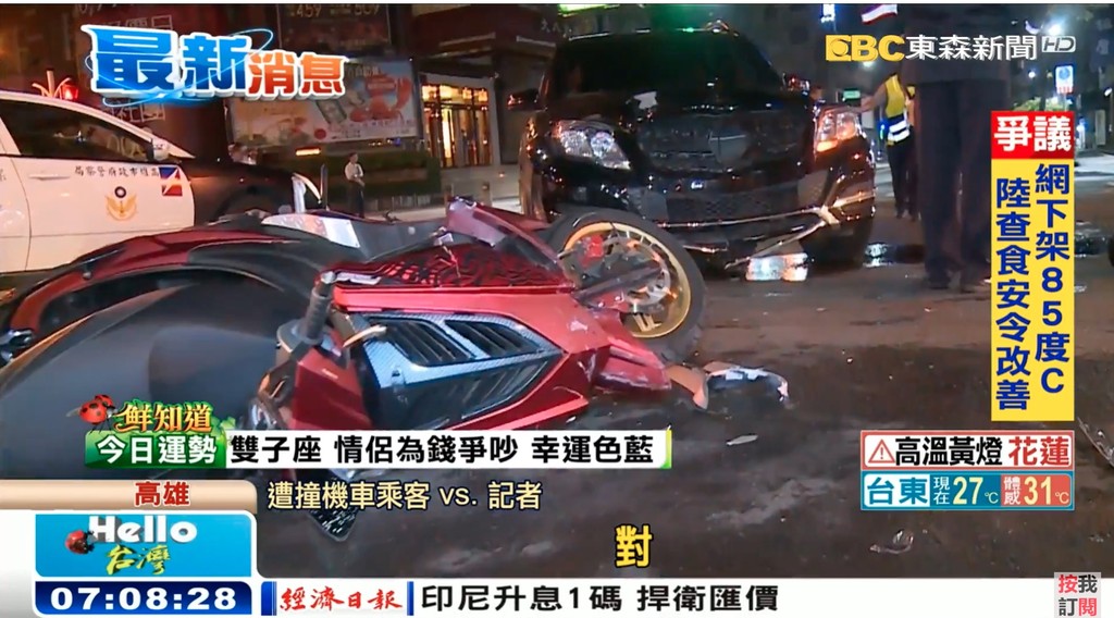 高雄凌晨傳出酒駕撞人事件。一名男子今(16日)凌晨駕駛賓士休旅車行經左營區博愛二路與裕誠路口時,疑似因搶快左轉撞上一輛機車,車上2人直接彈飛,肇事男子第一時間竟還推說是老婆開車,最後在熱心民眾指認與警方詢問下才坦承駕駛,經酒測數值高達0.53毫克。