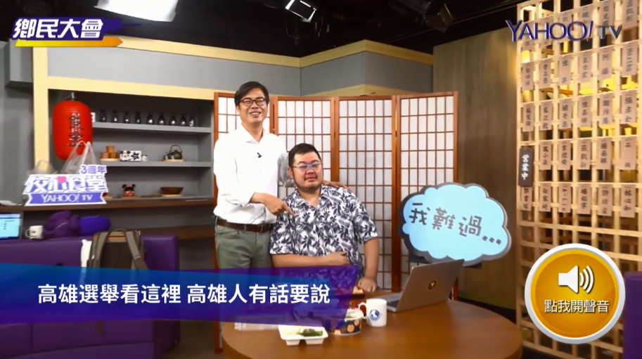 ▲陳其邁承諾要幫四叉貓證婚。(圖/YahooTV授權提供)