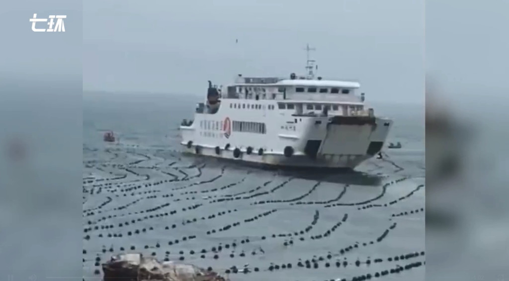 ▲和航興龍準備靠岸時,遇到強烈風浪導致誤入養殖區。(圖/翻攝自澎湃新聞)