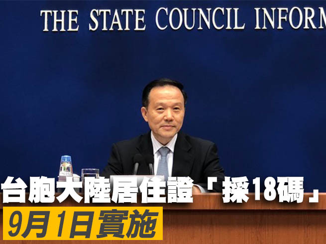 國務院今(16)日上午10時舉辦新聞發佈會,大陸公安部副部長侍俊、國台辦副主任龍明彪、港澳辦副主任黃柳權共同出席。公安部副部長侍俊表示,國務院辦公廳將印發《港澳台居民居住證申領發放辦法》(以下簡稱辦法),並於9月1日正式實施,這是黨中央、國務院便利港澳台居民在內地(大陸)學習、創業、就業和生產重要文件。
