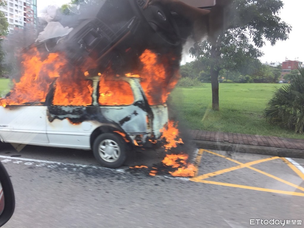 駕駛表示,該輛車是公用車,車齡超過20年,在送貨的過程中,突聞一股燒焦味便下車查看,沒想到車子就起火燃燒。