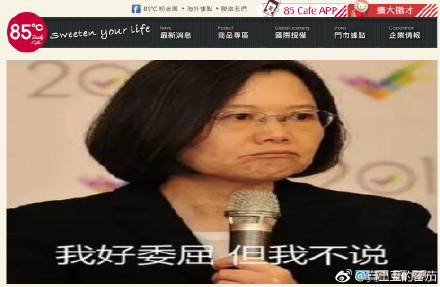 ▼85度c官網遭駭客入侵,滿滿簡體字加總統蔡英文的合成照。(圖/翻攝自賣土豆的蕃茄微博)