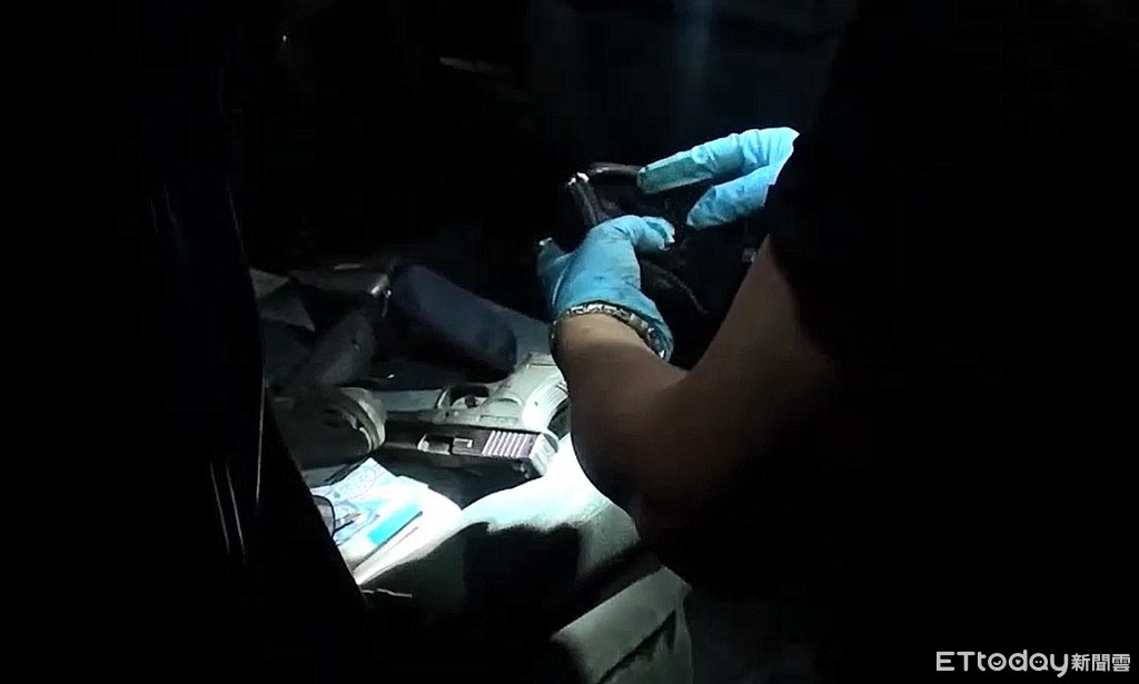 ▲警方在小貨車冷氣風箱內,查獲槍枝及毒品。(圖/記者李忠憲翻攝)