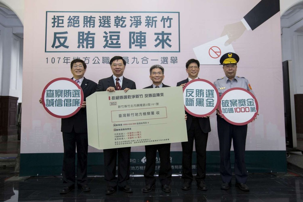 107年地方公職人員選舉將於11月24日舉辦,並於8月27日起受理候選人登記,為避免不法、暴力、賄選發生,新竹市政府今(16)日召開「拒絕賄選乾淨新竹 反賄逗陣來」反賄選宣誓記者會,未來將舉辦11場反賄選宣導活動,並提供1,000萬做為警察破案及績效獎金,鼓勵警察全力查賄,也發放16萬張抓賄信封,「一戶一信封」,家家戶戶反賄選,宣誓全民反賄選、賄選零容忍的共識。