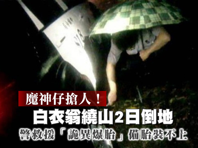 真的有神秘力量介入其中嗎?嘉義中埔分局大埔分駐所警方日前執行巡邏勤務時,在嘉143線山區一條不知名的小徑中發現60歲的巫姓老翁倒臥在地,當時大雨滂沱,員警立即將老翁喚醒並扶上車,沒想到警車繼續行駛才短短50公尺,竟然離奇爆胎,再加上又適逢鬼門甫開,鄰近的村民也議論紛紛,「是不是有魔神仔在跟警方『搶人』?」