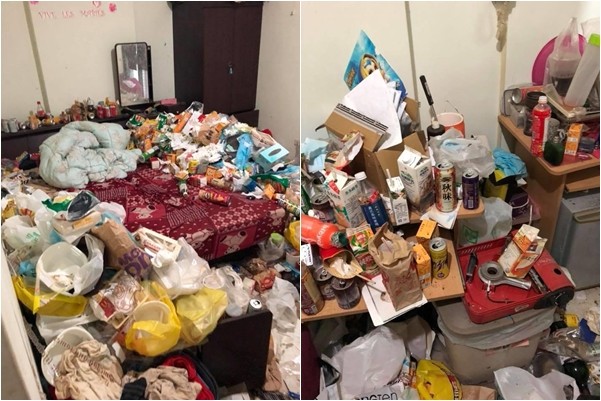 謝姓房東事後返回租屋處查看時,一開門當場楞在原地,小小的房間內垃圾多到滿出來,滿地都是空的飲料罐、鋁箔包、寶特瓶、零食罐、便當盒、衛生紙等垃圾,大張的雙人床上還有一大半也被垃圾海給淹沒;謝男氣憤表示,這些垃圾清完整整30幾袋,留下來的家具也全都不能用,呼籲其他房東「如果你的房客剛好是他,請你報警,因為你的房子可能也深受其害!」