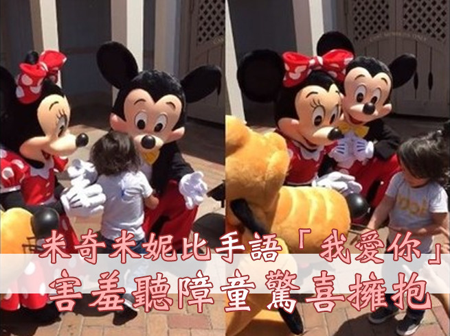 夢幻樂園迪士尼帶給世界各地的孩子們許多歡笑,讓人捨不得離開。美國一位聾啞小男孩先前到迪士尼遊玩,走向蹲低的米奇、米妮和布魯托比手語,沒想到下一秒他們竟然也用手語回應他,更比出「我愛你」,讓男孩又驚又喜。這段溫馨的影片瞬間融化網友的心,讓人直呼迪士尼真的是個神奇的地方。