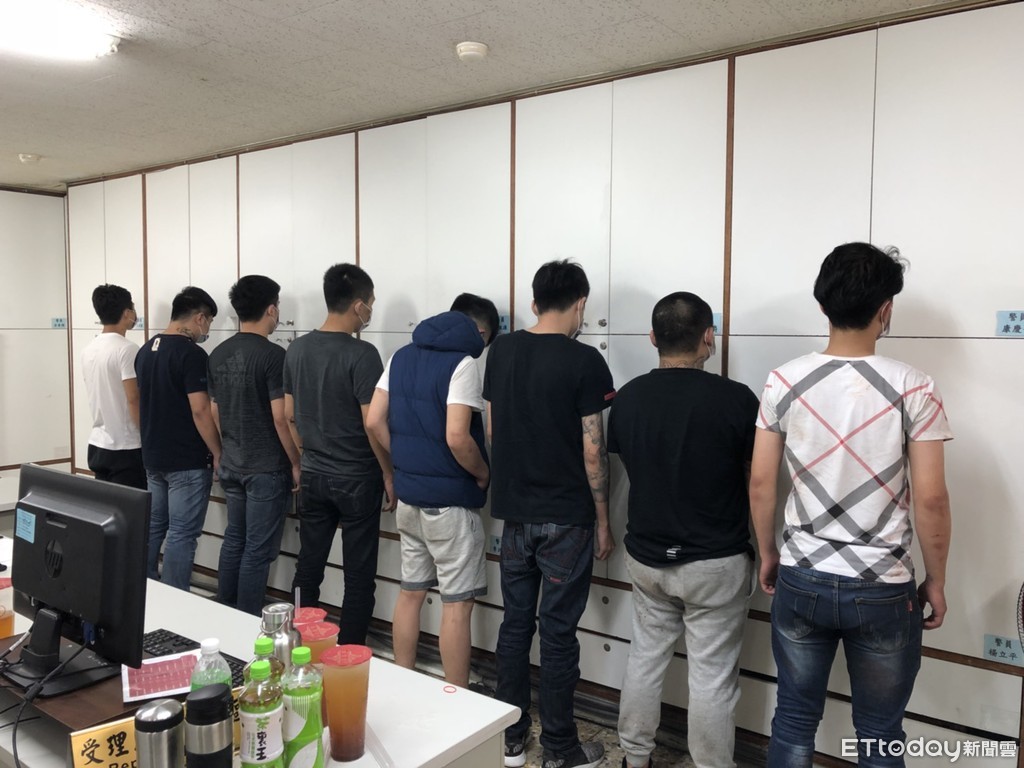 ▲8名惡煞被警方以辣椒水壓制後帶回偵辦。(圖/記者陳豐德翻攝)