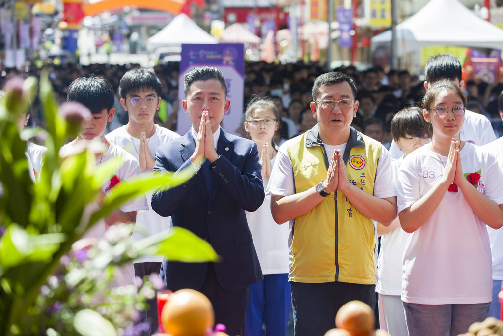 ▲竹蓮寺七夕成年禮 林智堅市長為學子脫絭祝福。(圖/新竹市政府提供)