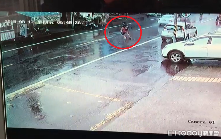 畫面中顯示,一名媽媽帶著女兒在馬路上左顧右盼,接著就直闖馬路,正當快要抵達對岸時,被一輛直行的機車撞上,該名母親當場倒地,她女兒則是被機車撞飛至少3公尺後重摔在地上,所幸都只受到輕傷,兩人起身後相擁,趕緊走到路邊。而騎士則是撞上母女後,也因此摔倒在地,被熱心民眾扶起後,自行離去。