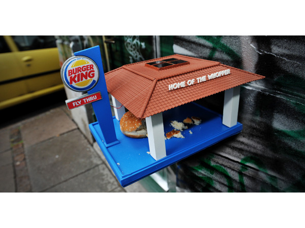 丹麥藝術家Brian Wolter動手製作了一個這樣的可愛設計品,速食店的造型就跟當地的漢堡王一模一樣,只是這間小店不服務人類,只給鳥類食用啦!