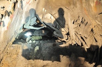 ▲▼蘇花改谷風隧道抽坍工地,北側與南側的開挖面山側空洞,已可看到對面工程人員。(圖/蘇花改工程處提供,下同)