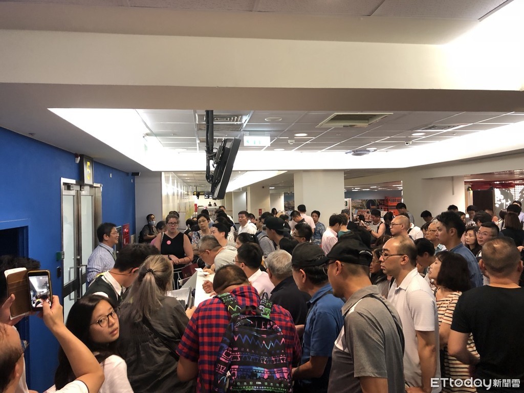 ▲東方航空MU5098航班原定17日17:15自台北松山機場飛往飛上海虹橋機場,但先是宣布延後至21:40,讓乘客在機場等一整個晚上,又在21:20突然宣布因超時取消航班,引起乘客群情激憤。(圖/ETtoday記者攝)