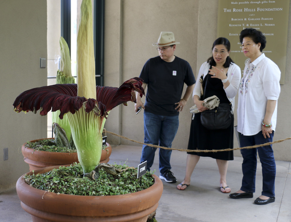 美國南加州杭廷頓圖書館(Huntington Library)有一顆巨花魔芋,俗稱「屍花」,近日開始開花,而這種植物在開花時,會散發出「腐爛惡臭味」,也是該名稱的由來,預計未來幾天會吸引許多遊客前來「聞臭」。