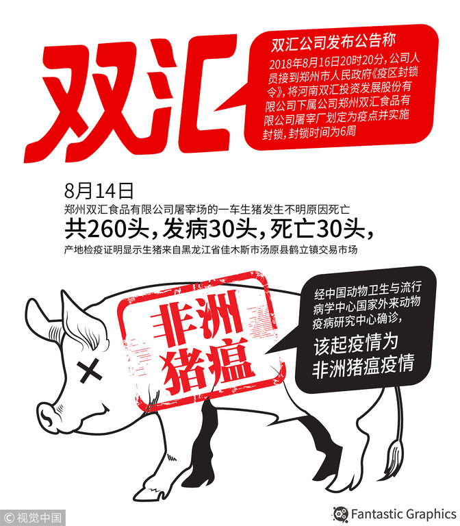 大陸豬瘟疫情爆發後,影響最大的當屬上市公司雙匯發展的股價,17日該公司股價終於小幅反彈,全天上漲了0.67%,關係企業萬洲國際港股也同樣小幅上漲0.49%。但雙匯公司下屬的鄭州雙匯食品有限公司(簡稱「鄭州雙匯」)屠宰廠,於17日已被劃定為疫點並實施封鎖,封鎖時間為6周。