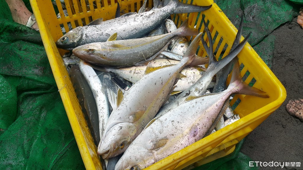 ▲▼百人牽罟,合力與海拔河將漁網拉上岸,近百斤漁獲讓遊客享受當1日漁夫之樂。(圖/東北角管理處,下同)