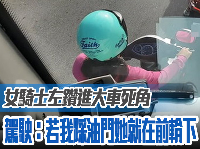 騎士遠離大車保安全!新北市一名張姓大車駕駛等紅燈時,發現一名女騎士鑽到大車前方死角,所幸他剛好有看到,否則後果不堪設想。張先生今天(19日)接受《ETtoday新聞雲》訪問表示,「如果我踩油門,她就進我左前輪下了。」他也希望藉此消除大小車之間的誤會,「很多人會覺得說我們大車比較高,所以好像什麼都看得到,其實因為很高所以什麼都看不到。」